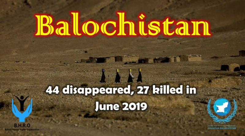 Balochistan: 44 disappeared, 27 killed in June 2019
